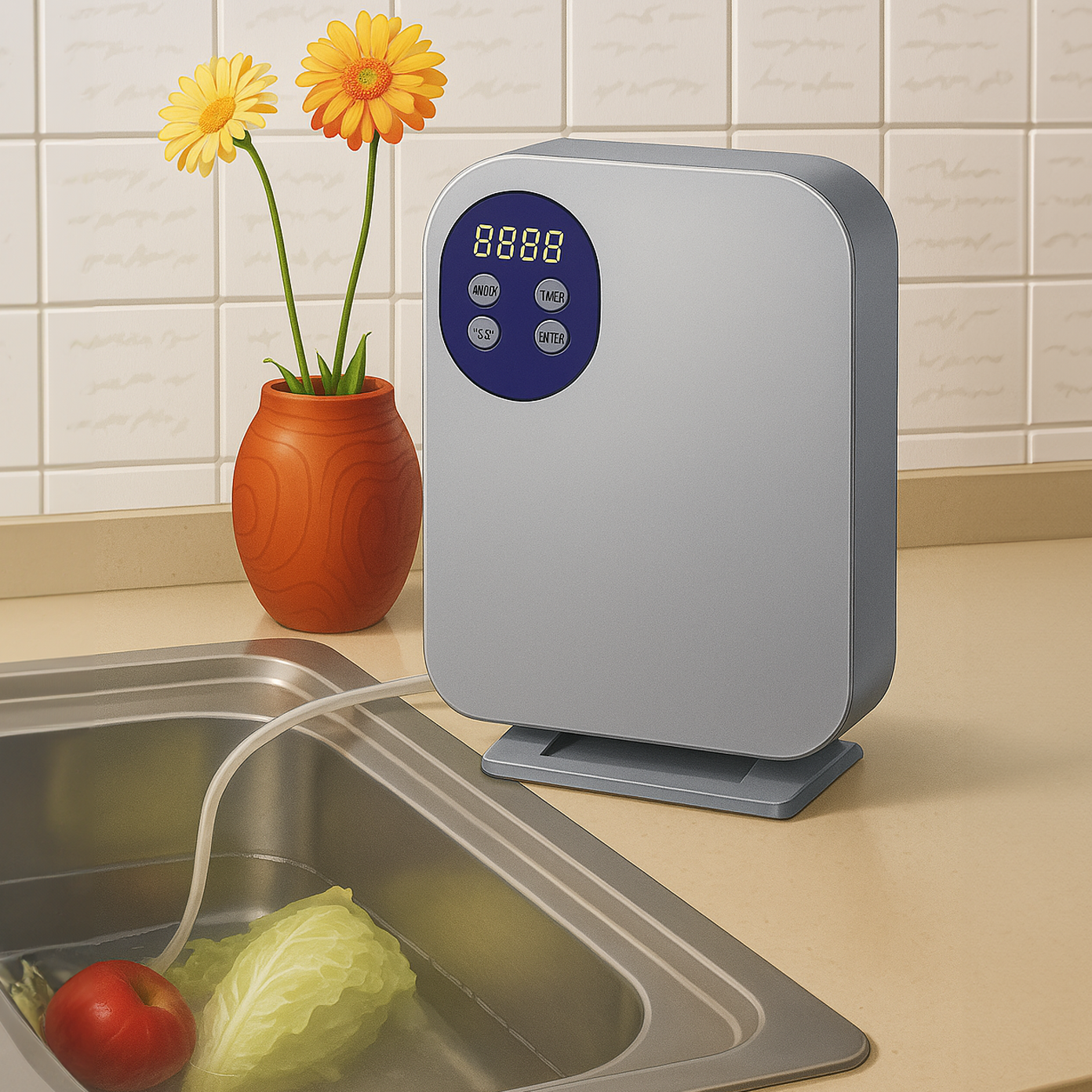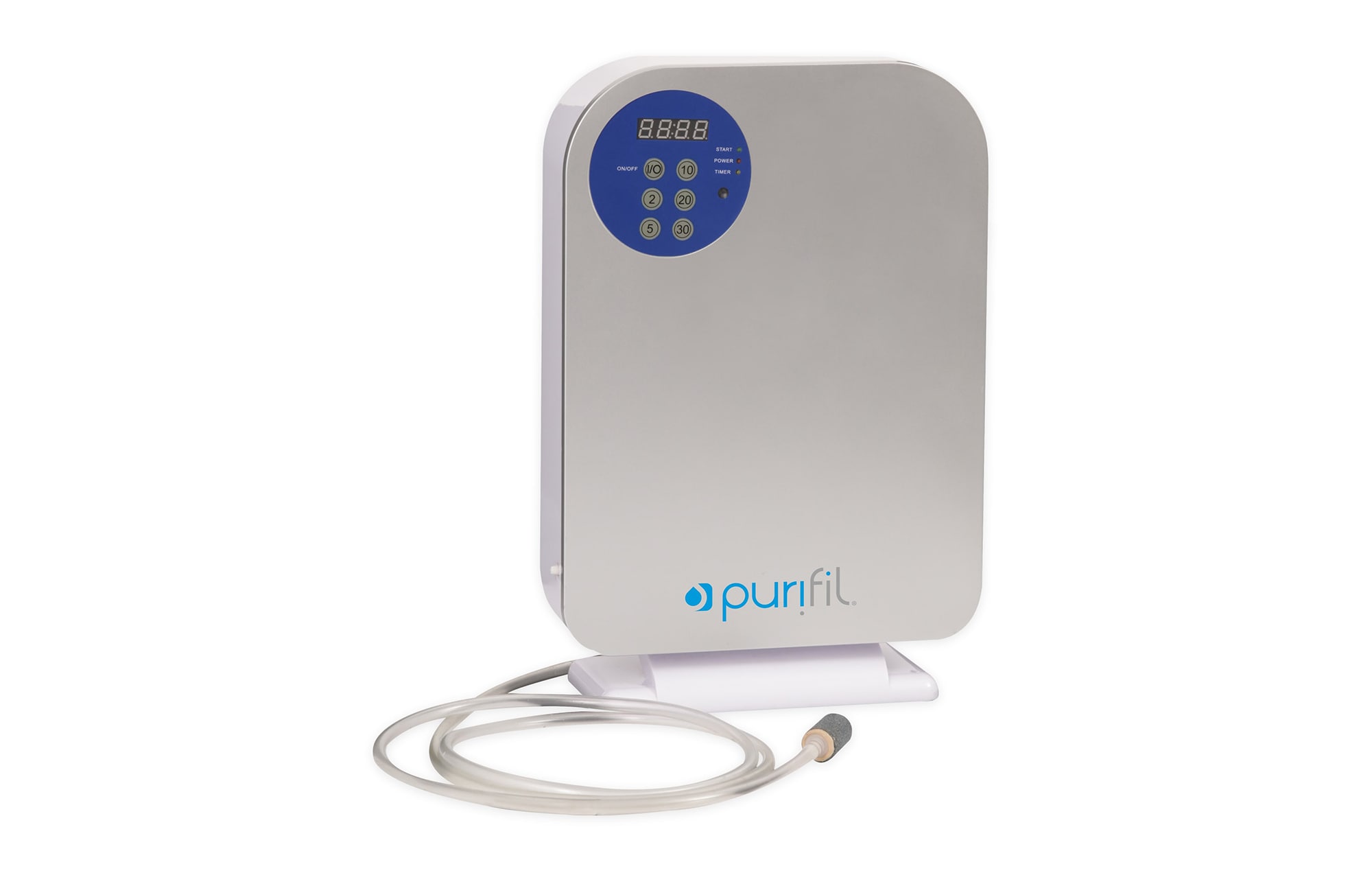 Generador de ozono por burbujeo, elaborado en acetato sintético térmico resistente a altas y bajas temperaturas. Incluye manguera y difusor para la desinfección de agua y aire.