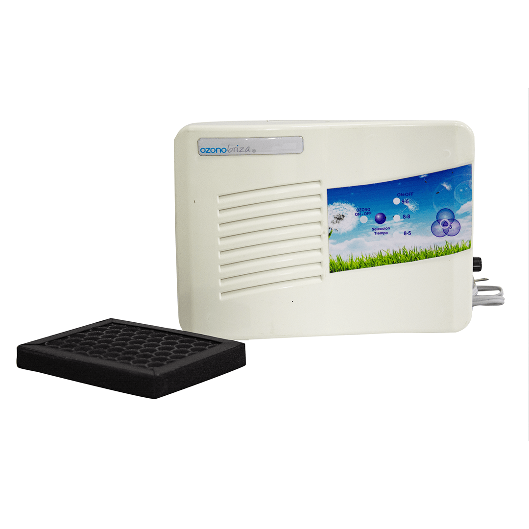 Purificador de aire tipo Hepa en ABS marca Ozonobriza. Con sistema integrado de ozono que purifica y desinfecta el ambiente de áreas hasta de 25m².