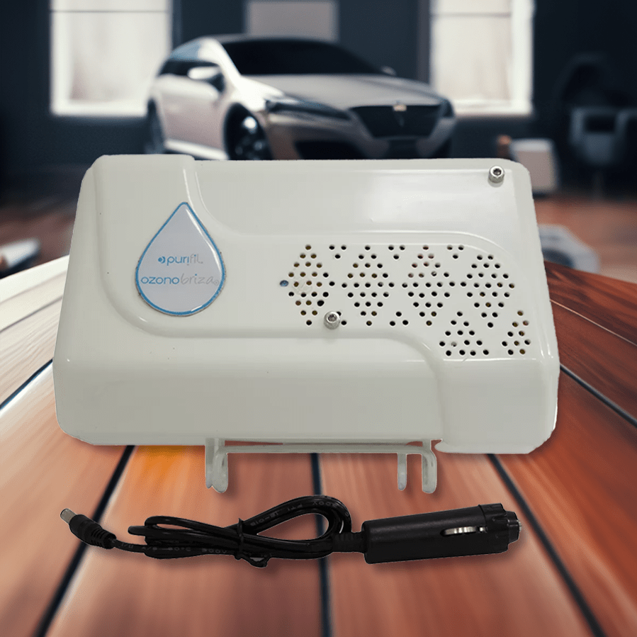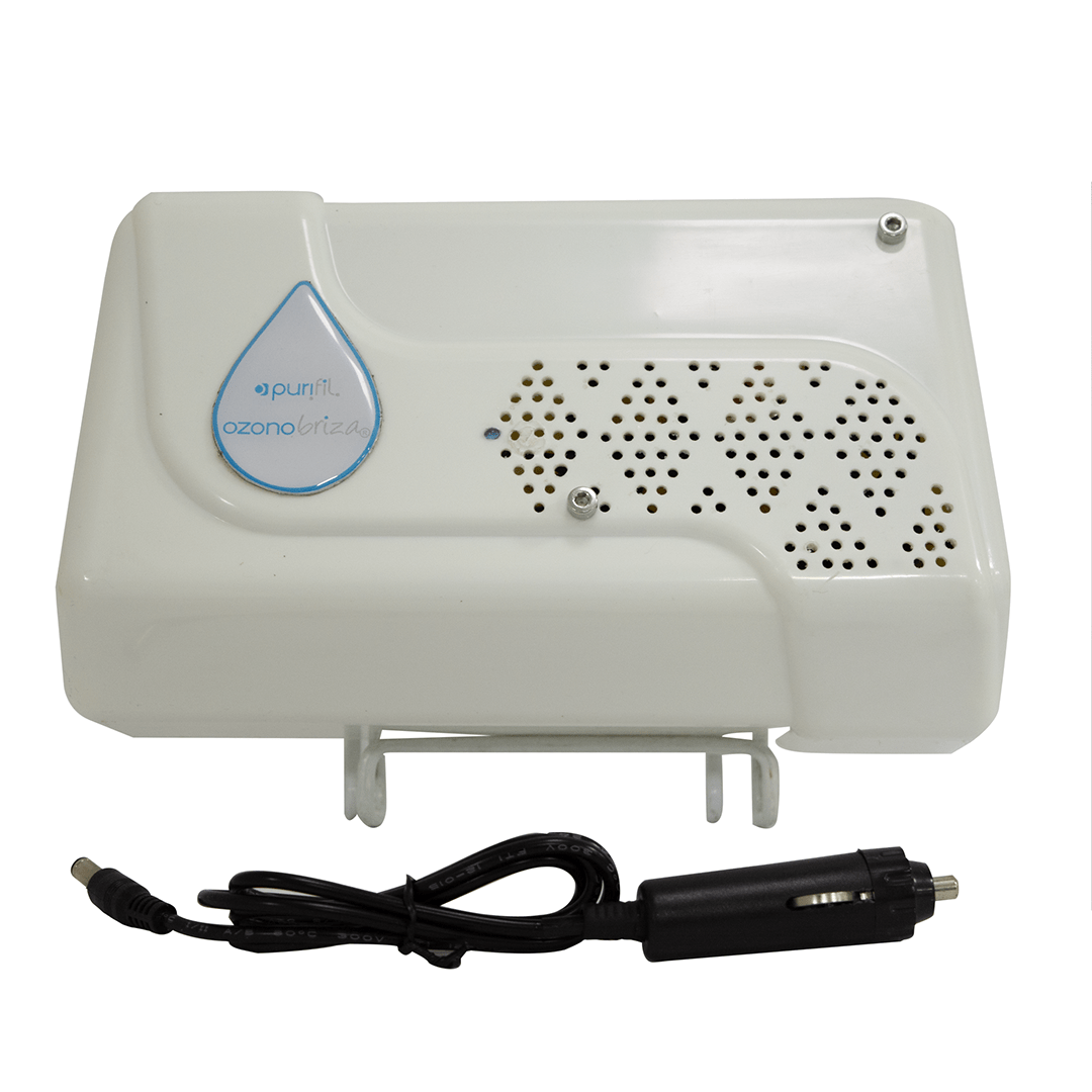 Purificador de aire portátil en ABS marca Ozonobriza. Con sistema integrado de ozono que purifica y desinfecta el ambiente de espacios hasta de 25m². Elimina olores, toxinas y microorganismos presentes en los automóviles. Incluye adaptador de fácil conexión para carro.